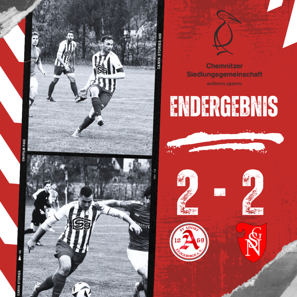 In der Schlussphase blieb es ein ausgeglichenes Spiel ohne entscheidende Möglichkeiten. Am Ende steht ein leistungsgerechtes Unentschieden, auch wenn der SV Adorf vor allem aufgrund der ersten Halbzeit mehr hätte mitnehmen können.
