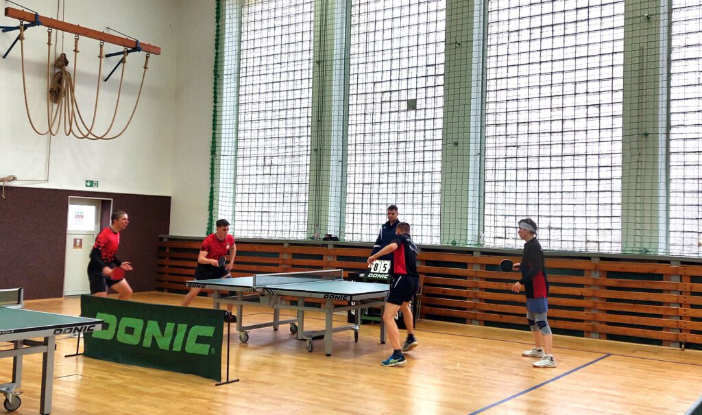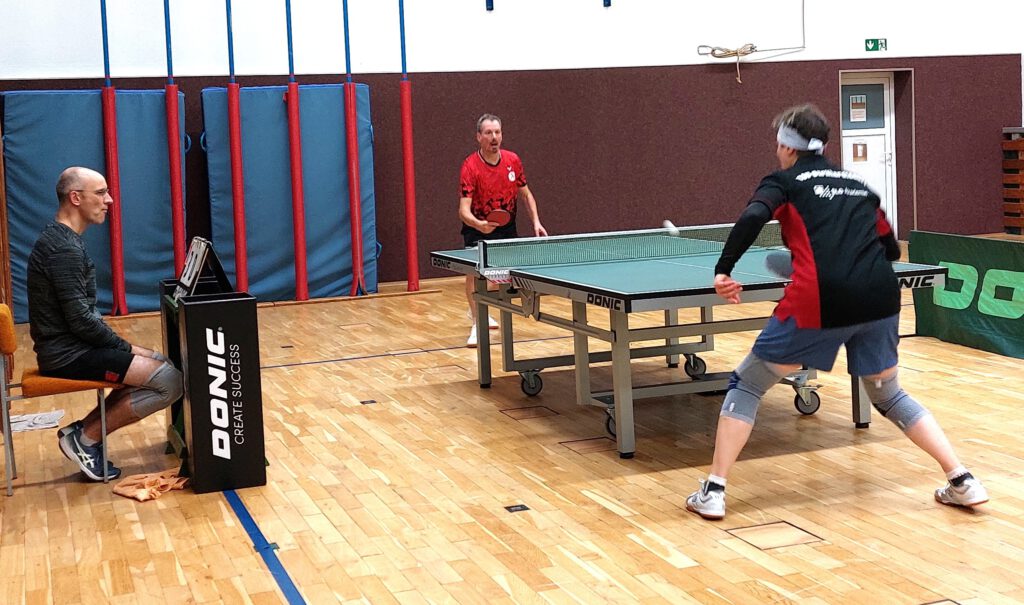 Unsererseits waren alle Mann mit an Bord. Die dritte Vertretung des TSV Elektronik Gornsdorf, in der letzten Saison noch in der zweiten Bezirksliga zugange, trat mit zwei Ersatzspielern an. Unser zweites Doppel Benni/Ivo traf auf Niklas Müller und Marco Graupner, die Gornsdorfs erstes Doppel bildeten. Den ersten Satz mussten unsere Jungs zwar abgeben, schalteten danach aber einen Gang nach oben. Die nächsten drei Sätze gingen allesamt verdient an Adorf. Der erste Spielpunkt in der Bezirksklasse war somit in Sack und Tüten! Luca und Maxi, unser gesetztes Doppel eins, mussten gegen Gornsdorfs zweites Doppel Jörg Anhut/Paul Wetzel ran. Unsere beiden Jungs kamen gut in die Partie und erkämpften sich in der Folge die ersten beiden Sätze. Danach hatten sich die Gornsdorfer aber besser auf das Spiel eingestellt und holten ebenfalls zwei Sätze, wobei vor allem Sportfreund Anhut jeden Ball aus gefühlt jeder Lage angriff. Der letzte Satz endete knapp, aber nicht unverdient mit 11:9 für die Gornsdorfer. Nico und Simon, Adorfs Doppel drei, bekamen es mit Anna Sikeler und Uwe Wetzel zutun. Die Adorfer führten schnell mit 2:0, kassierten dann aber den Gornsdorfer Anschluss. Beim Stand von 8:10 aus Adorfer Sicht im vierten Satz spielte Nico zwei eiskalte (nicht ganz risikofreie) kurzgelegte Bälle zum 10:10. Durch lautstarke Unterstützung der mitgereisten Fans gingen die zwei folgenden Ballwechsel an Adorf – 3:1 der Endstand.
