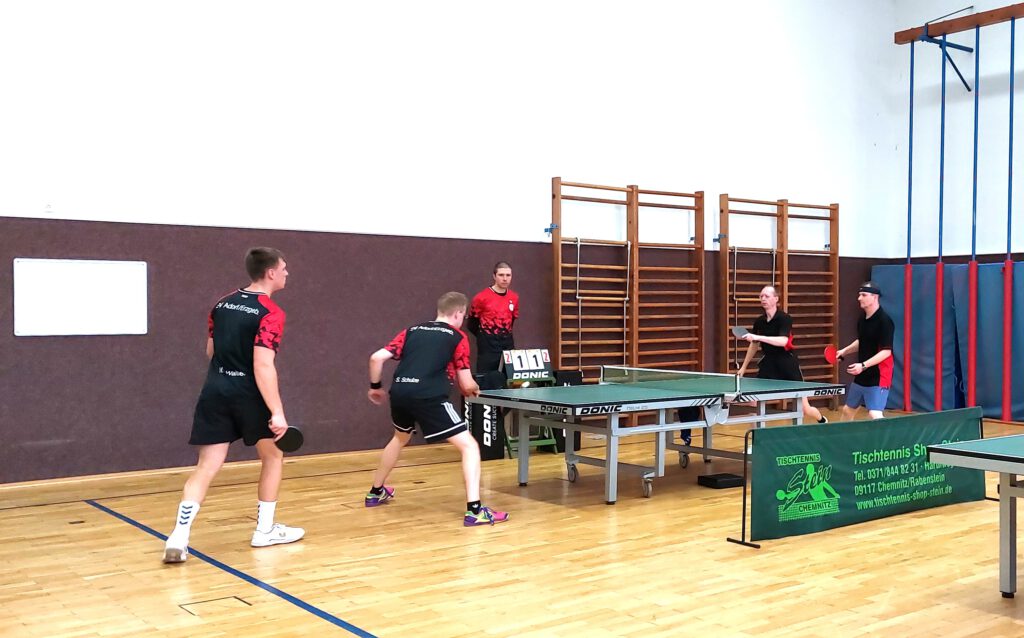 Unter der Woche mussten am Montag die Damen und Herren der 4. Mannschaft zum letzten Heimspiel in der Hinrunde gegen Tabellenführer BSC Rapid Chemnitz 5 antreten. Die Messlatte hin hoch, denn Rapid hatte die Spielvereinigung Blau Weiß Chemnitz, immerhin Tabellenzweiter, mit 15:0 bezwungen. Unser erstes Paarkreuz mit Bernd und Thomas holten gegen Banek und Hofmeister drei Punkte (Respekt!), den vierten Punkt steuerte Maximilian gegen Jahn bei. Damit beendet die 4. Mannschaft die Hinrunde auf einem respektablen 4. Platz.