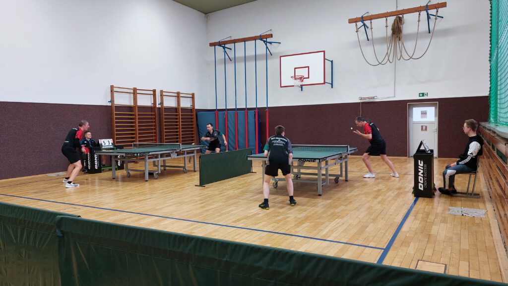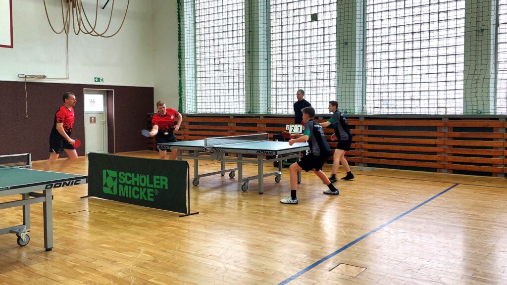 Die Doppel starteten verhalten. Luca und Maxi mussten den ersten Satz gegen Jörg Anhut und Jens Reppe mit 10:12 abgeben, stellten mit einem 11:6 aber prompt auf 1:1. Die Gornsdorfer behielten jedoch die Nerven, holten sich mit einem 12:10 Satz drei und in der Folge mit 11:5 auch noch Satz vier. Nico und Simon waren gegen Marco Graupner und Niklas Müller wahrlich nicht ohne Chance, verloren die ersten beiden Sätze aber jeweils knapp mit 9:11. Im dritten Satz lief dann nicht mehr viel zusammen und unsere Jungs mussten sich mit 7:11 und 0:3 geschlagen geben. Es lag also an Benni und Ivo, den Rückstand nicht noch größer werden zu lassen. Die beiden machten es gegen Anna Sikeler und Holger Schramm aber wirklich super! Mit höchster Konzentration, vielen richtigen Entscheidungen und Spaß am Tischtennis holten sich Benni und Ivo alle drei gespielten Sätze und ließen dabei nichts anbrennen (+1, +5, +4). Respekt, das war eine starke Leistung unseres dritten Doppels!