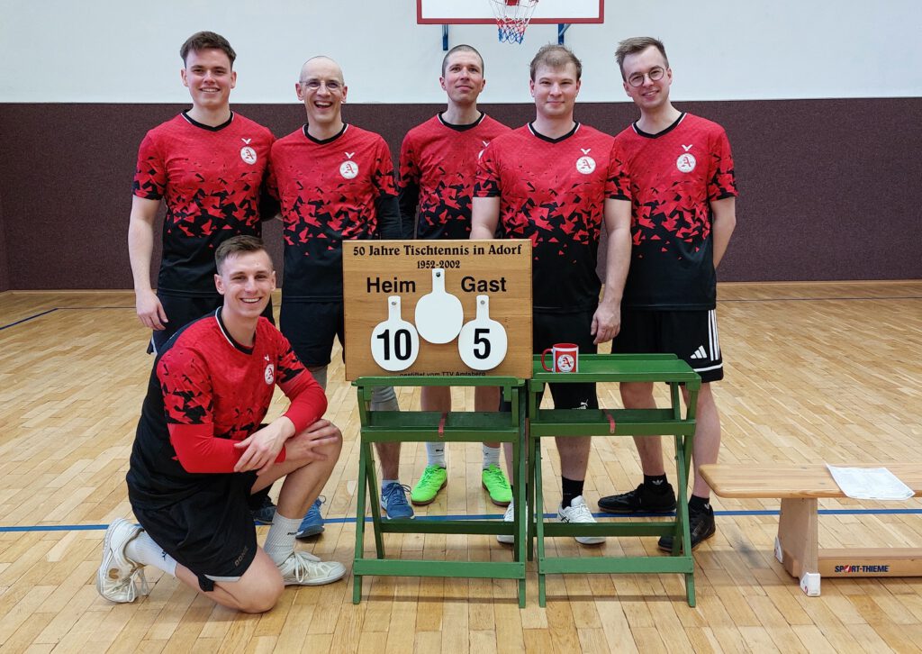 .Ivo eröffnete die erste Einzelrunde gegen Anna Sikeler. Unsere Nummer sechs konnte zwar einen 0:1-Rückstand zum 1:1 ausgleichen, danach fand Ivo aber nicht mehr wirklich in sein Spiel – 1:3 der Endstand aus der Sicht von Adorf. Luca spielte gegen Jörg Anhut gleich den nächsten Fünfsatz-Krimi dieses Nachmittags. Zweimal führte unsere Nummer eins, beide Male beantwortete Sportfreund Anhut diese aber mit einem eigenen Satzgewinn. Im fünften Satz ging es dann wieder hin und her und Jörg Anhut packte einige Male seine starke Rückhand aus. Am Ende war es aber Luca, der den Deckel drauf machte – 11:8 und 3:2 der Endstand. Simon gewann am Nachbartisch verdient mit 3:1 gegen Marco Graupner und sorgte dafür für ein Novum in dieser Saison: Das war das erste Mal, dass das obere Paarkreuz alle vier möglichen Punkte holte. Zudem war es sein erstes Spiel mit zwei Einzelsiegen in der Rückrunde. Das tut gut! Benni musste sich währenddessen mit 1:3 Niklas Müller geschlagen geben, aber Maxi tütete den Sieg schlussendlich ein. Mit einem klaren und souveränen 3:0 gegen Jens Reppe holte er den neunten und entscheidenden Punkt. Da brannte nichts an! Ivo erhöhte das Ergebnis sogar noch, indem er Holger Schramm klar mit 3:0 bezwingen konnte. Zwischenzeitlich drohten die Emotionen wieder hochzukochen – Ivo, der Heißsporn, wies seinen Gegner auf nicht regelkonforme Aufschläge hin – aber der Schiedsrichter hatte alles im Griff und am Ende gaben sich beide wieder die Hand.