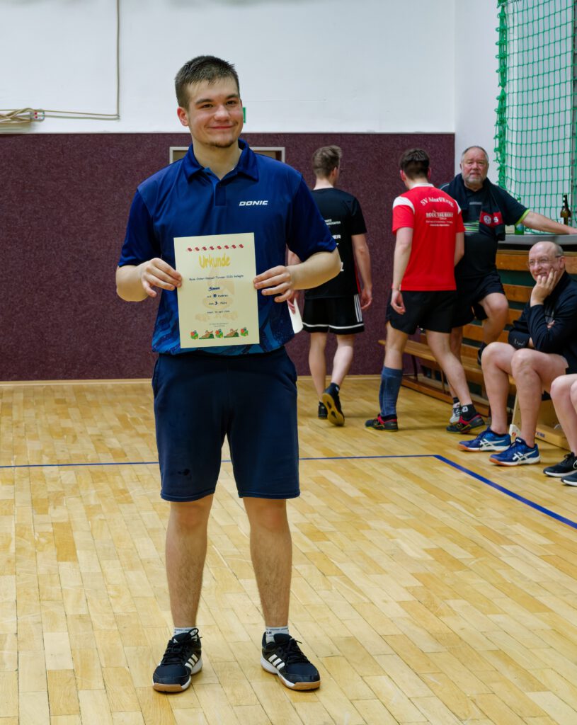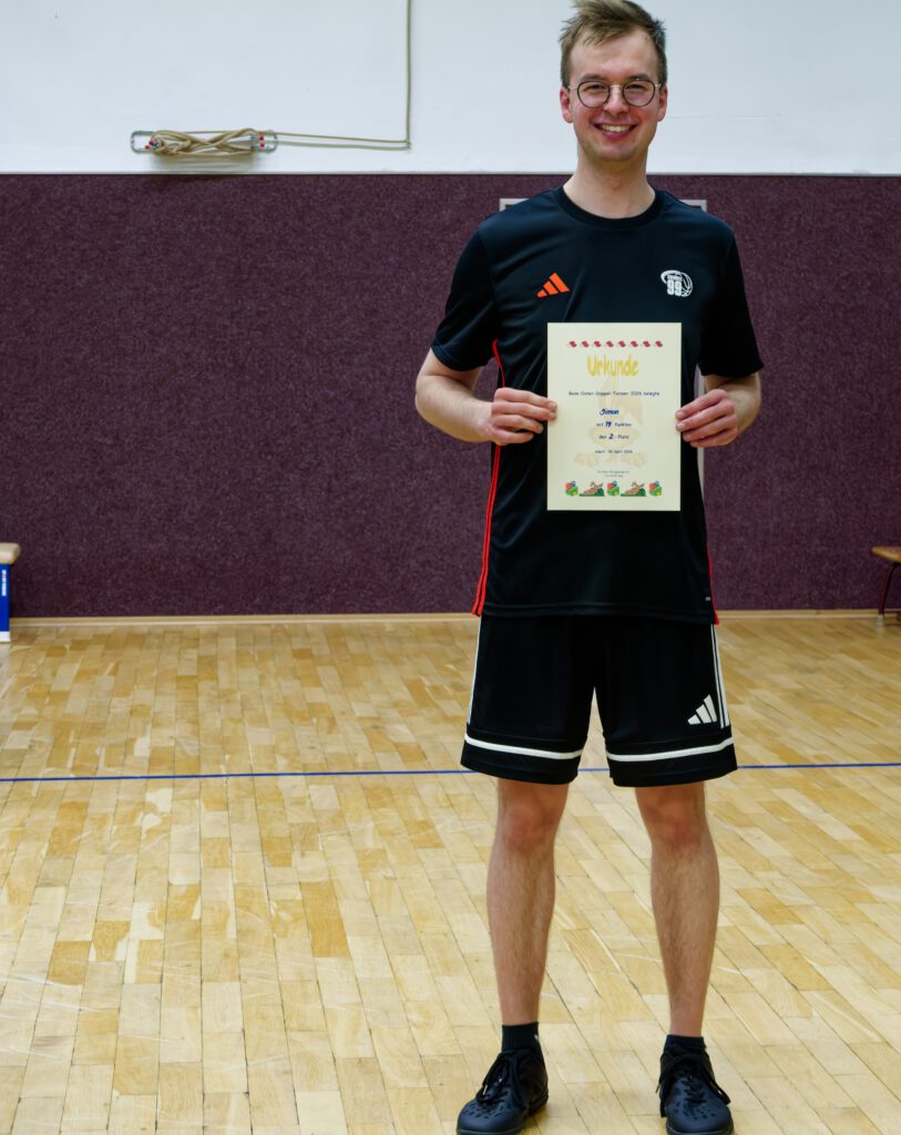 Nach zehn Runden, in denen sich mit oder ohne Losglück, mit viel oder etwas weniger Spaß, die Spieler an den Tischen gegenüberstanden, wurde unser Osterdoppelturniersieger gekürt, auch in diesem Jahr alle andere als überraschend: natürlich unsere Nummer 1 der Ersten, Luca! Platz 2 und 3 gingen an Simon und Simon – wir gratulieren ganz herzlich und sagen Danke an alle für diesen schönen Abend.